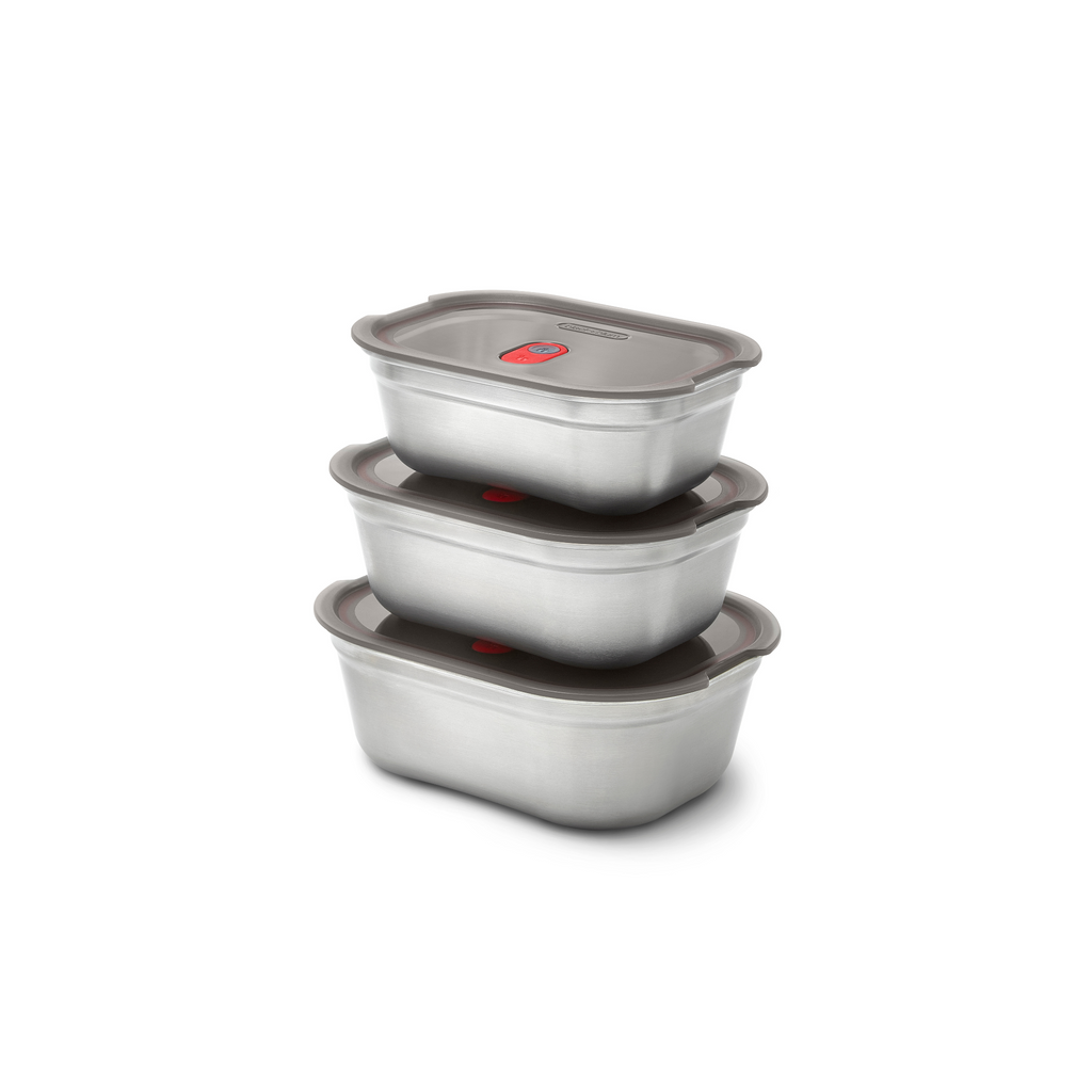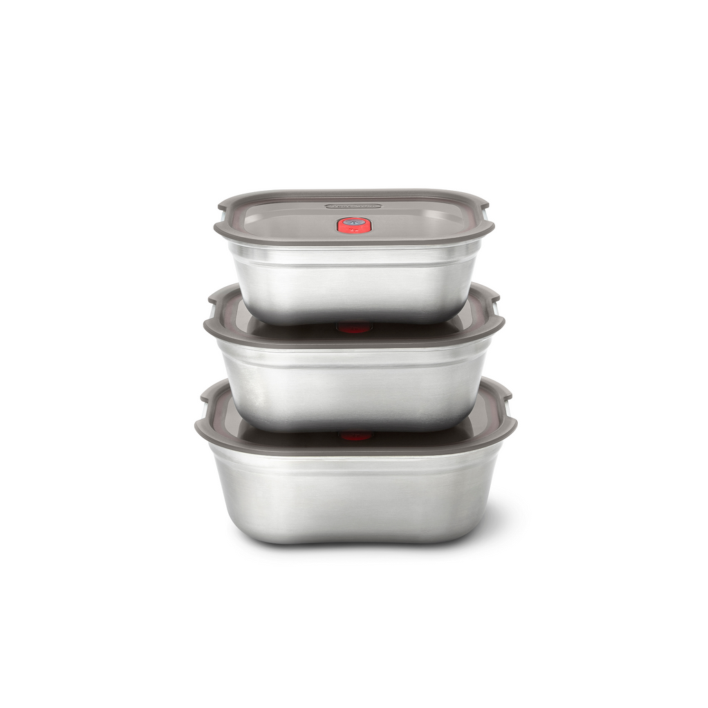 Das Black+Blum Meal Prep Box Set bietet drei hochwertige, multifunktionale Lebensmittelboxen aus Edelstahl in verschiedenen Größen (600 ml, 900 ml, 1200 ml). Diese Lunchboxen sind perfekt geeignet für Meal Prep, die Aufbewahrung und den sicheren Transport von Mahlzeiten für unterwegs. Mit ihrem auslaufsicheren, luftdichten Design bleiben Ihre Speisen länger frisch und sicher verschlossen.